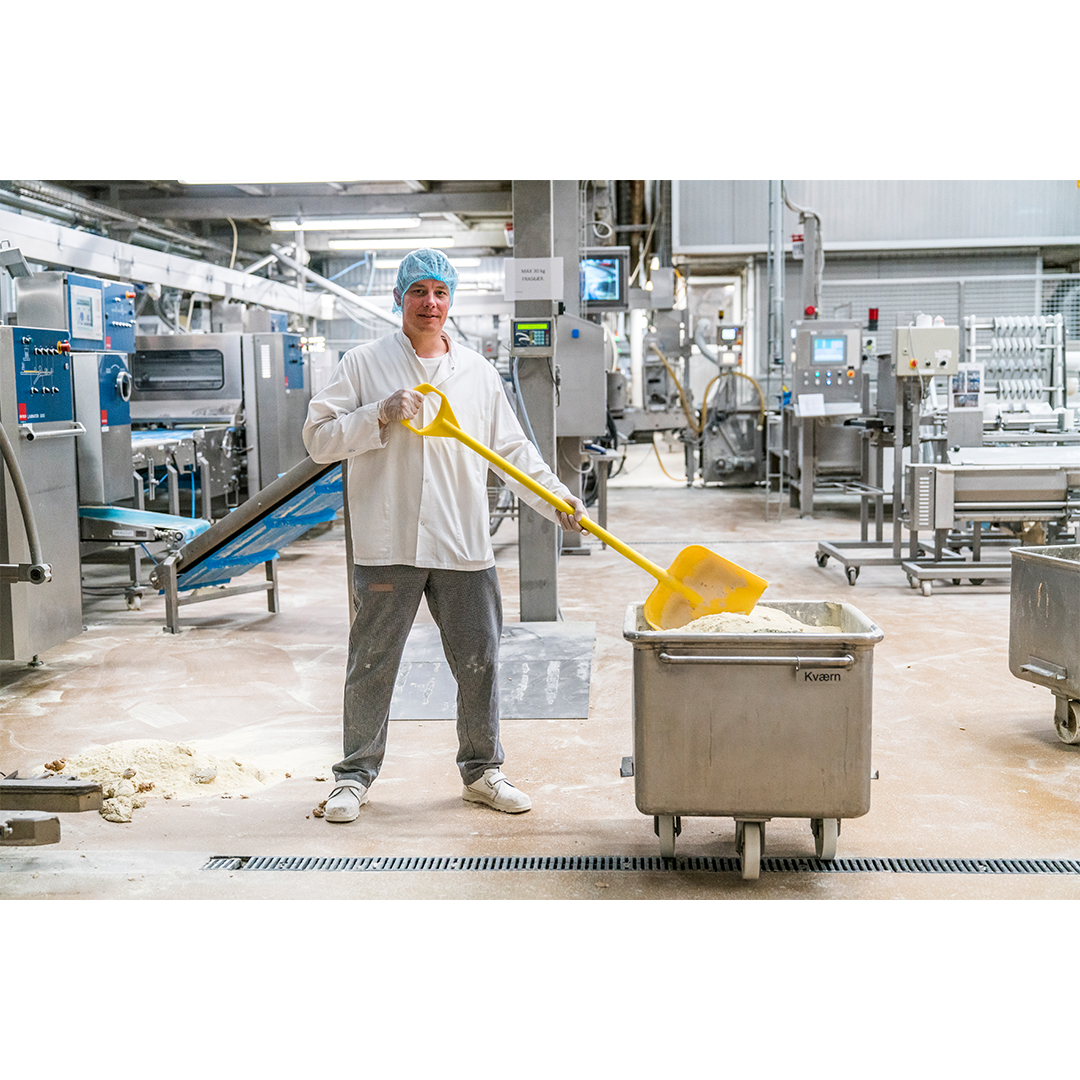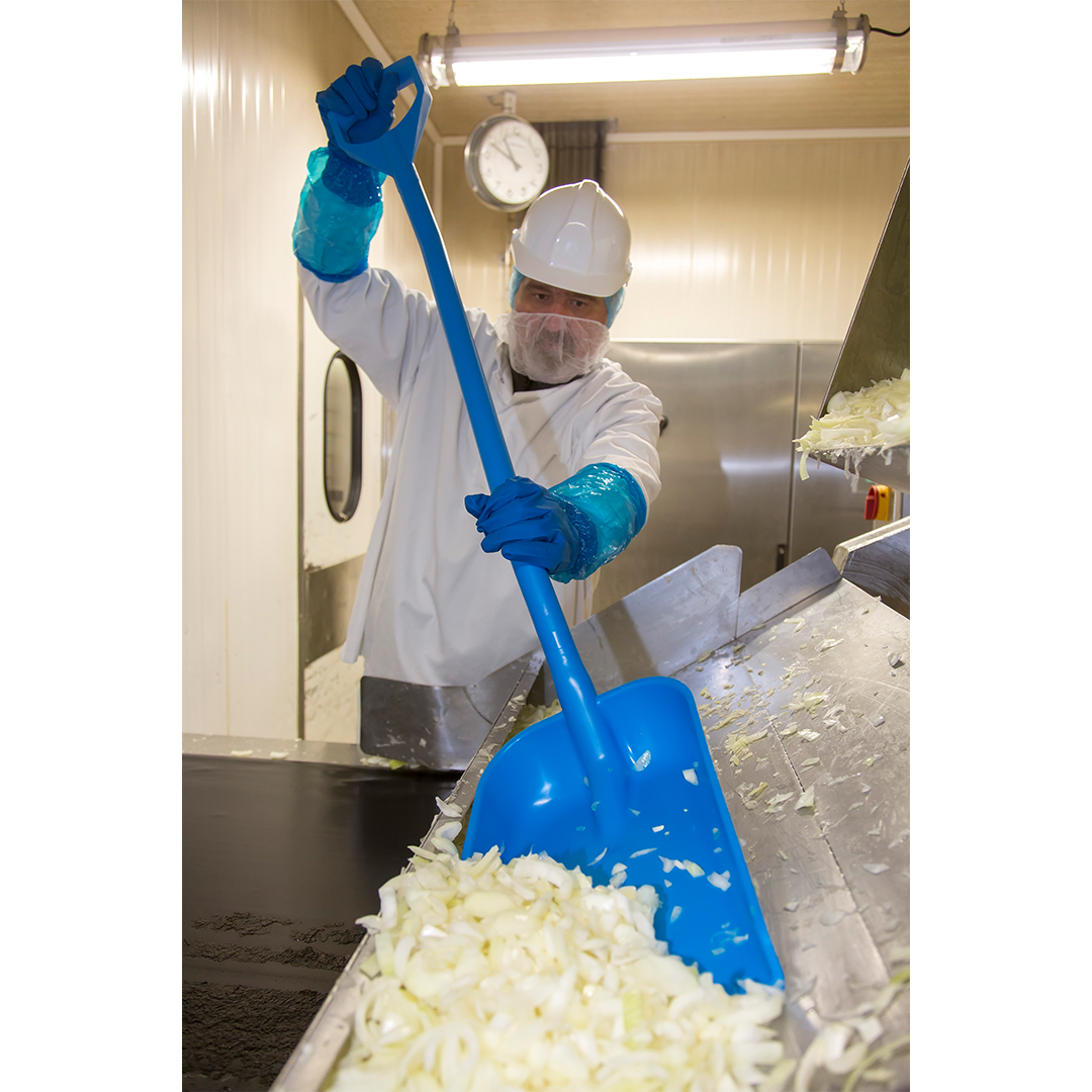 Use this durable Ergonomic Shovel to move large amounts of food waste or food ingredients. Ergonomically designed with the user’s working position in mind, this product is ideal for working at floor level as well as shovelling from container to container.