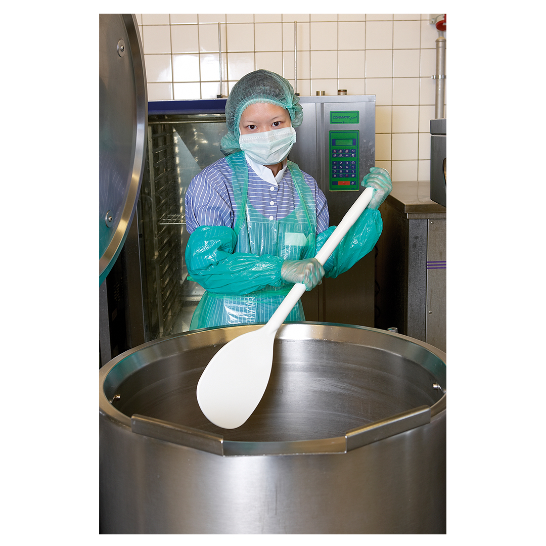 Stir food ingredients in large pots and vats with the small mixer. Heat resistant to 170°C.